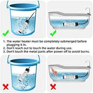 - Never operate an immersion heater outside of water, as it can overheat and become damaged.