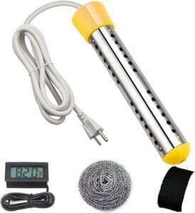- This is a compact and portable immersion heater designed to heat water in a bucket or small container.