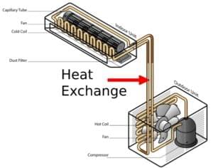 - The heat from the inside is released through the outdoor condenser coil.
