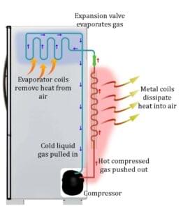 - The process begins with a compressor, which is usually located at the back of the refrigerator.