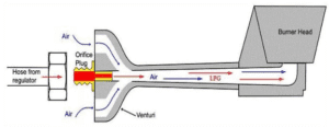 - LPG gas stove consists of a venturi for mixing air and LPG gas